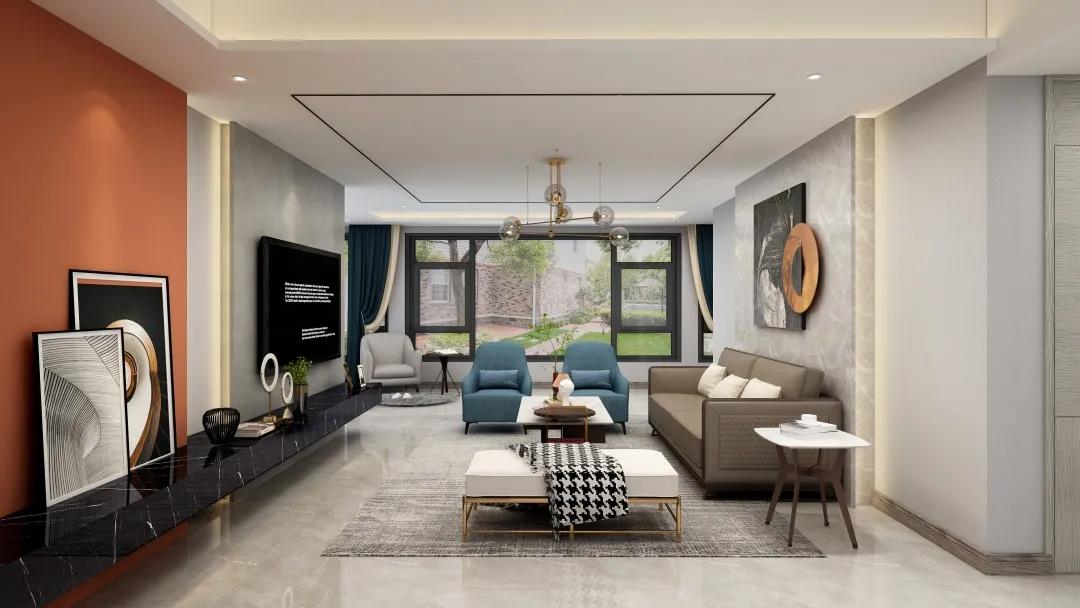 窗外的阳光使得客厅空间更加明亮宽敞。电视墙精致的线条设计,令空间更具层次感。亮眼的爱马仕橙,搭配个性的抽象挂画又让整个墙面更加丰富。活力与沉稳融合,给平凡而枯燥的生活增添些许希望与美好。